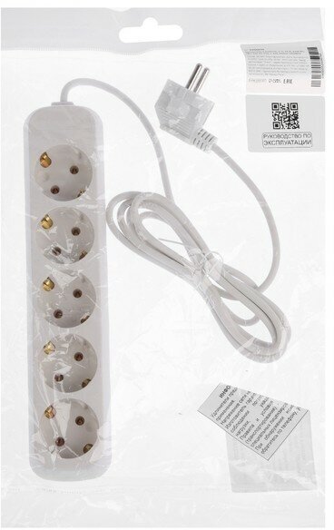 Отзывы на Удлинитель 5 розеток, 2 м, 10 А, 2200 Вт, ПВС 3х0.75 мм2, с з/к, белый