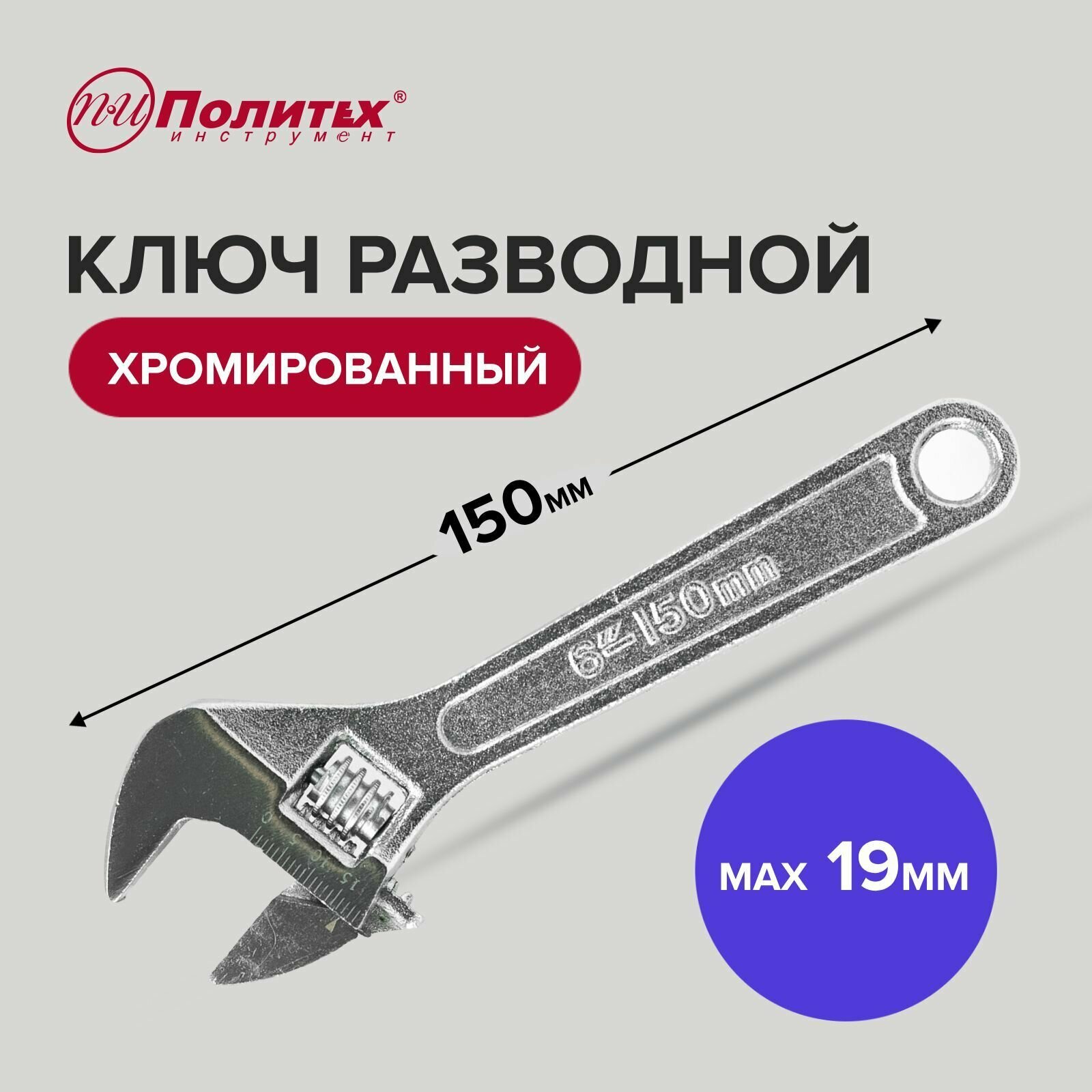 Ключ разводной хромированный 6" 150 мм, Политех Инструмент информация: