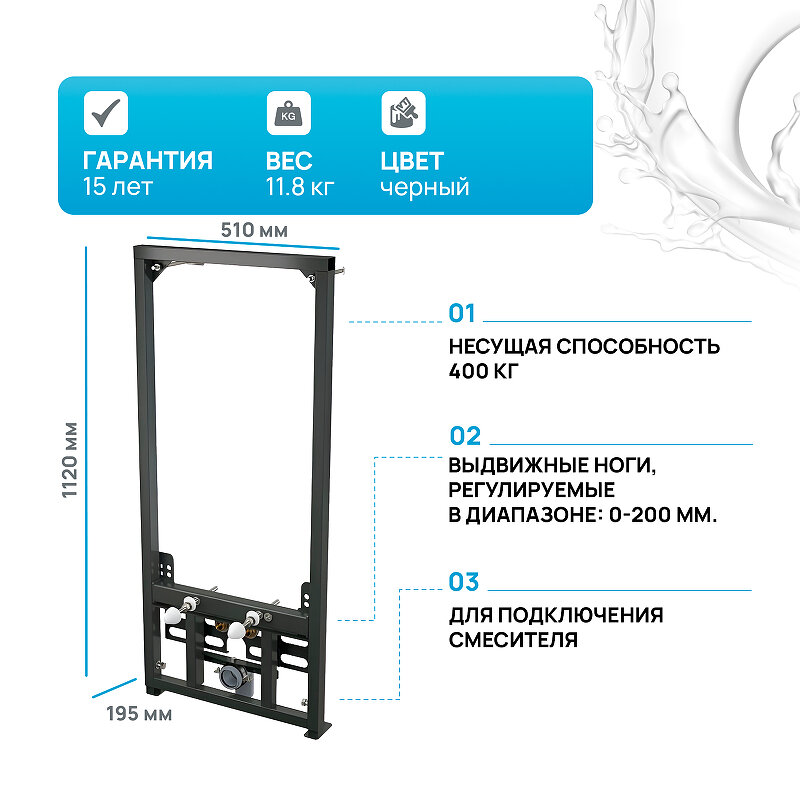 Vincea Инсталляция для унитаза Vincea VIS-601, 500x1112