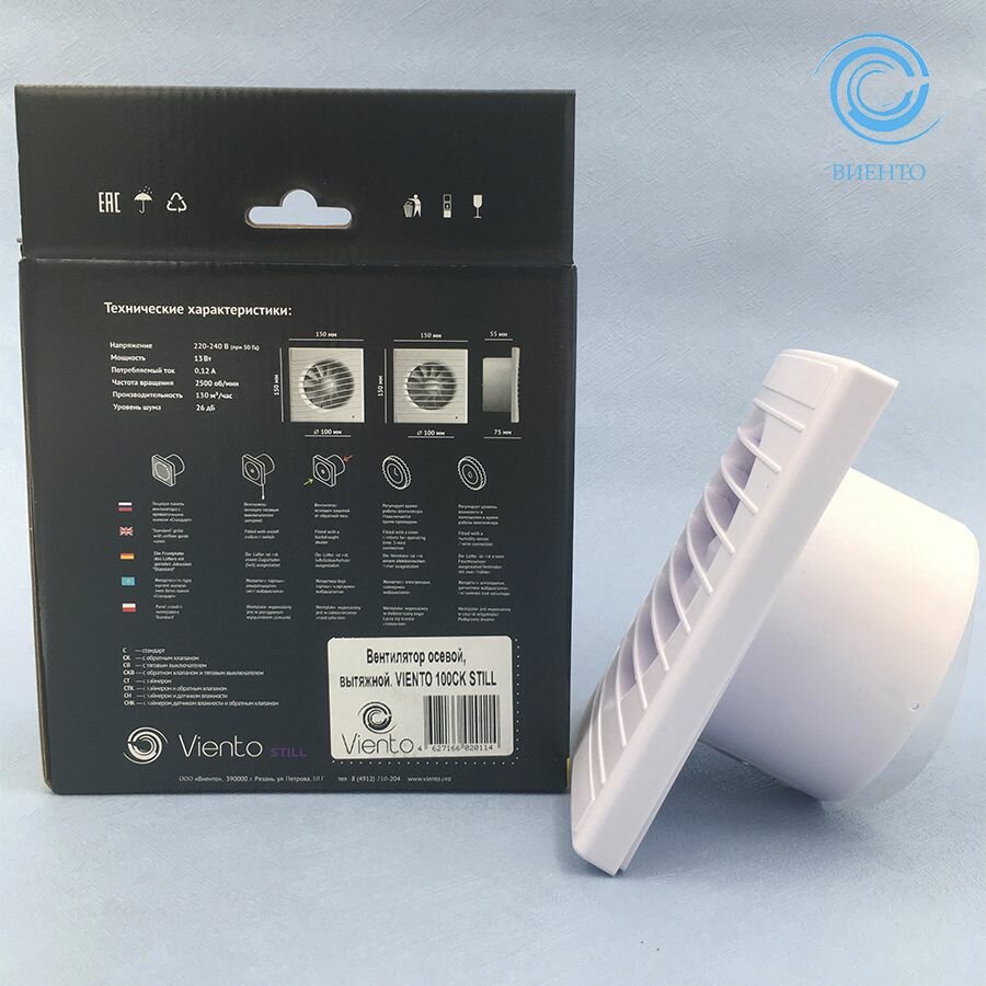 Вентилятор осевой, вытяжной с обратным клапаном Viento 100СК Turbo STILL (130 м3, 26 Дб), белый