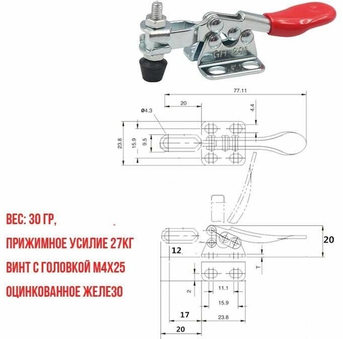 Зажим рычажный струбцина механическая с горизонтальной ручкой 27кг быстрозажимная 6 шт информация: