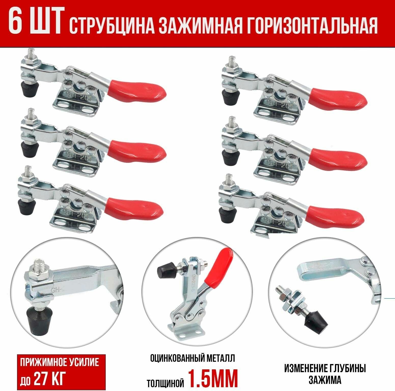 10 цен на Зажим рычажный струбцина механическая с горизонтальной ручкой 27кг быстрозажимная 6 шт