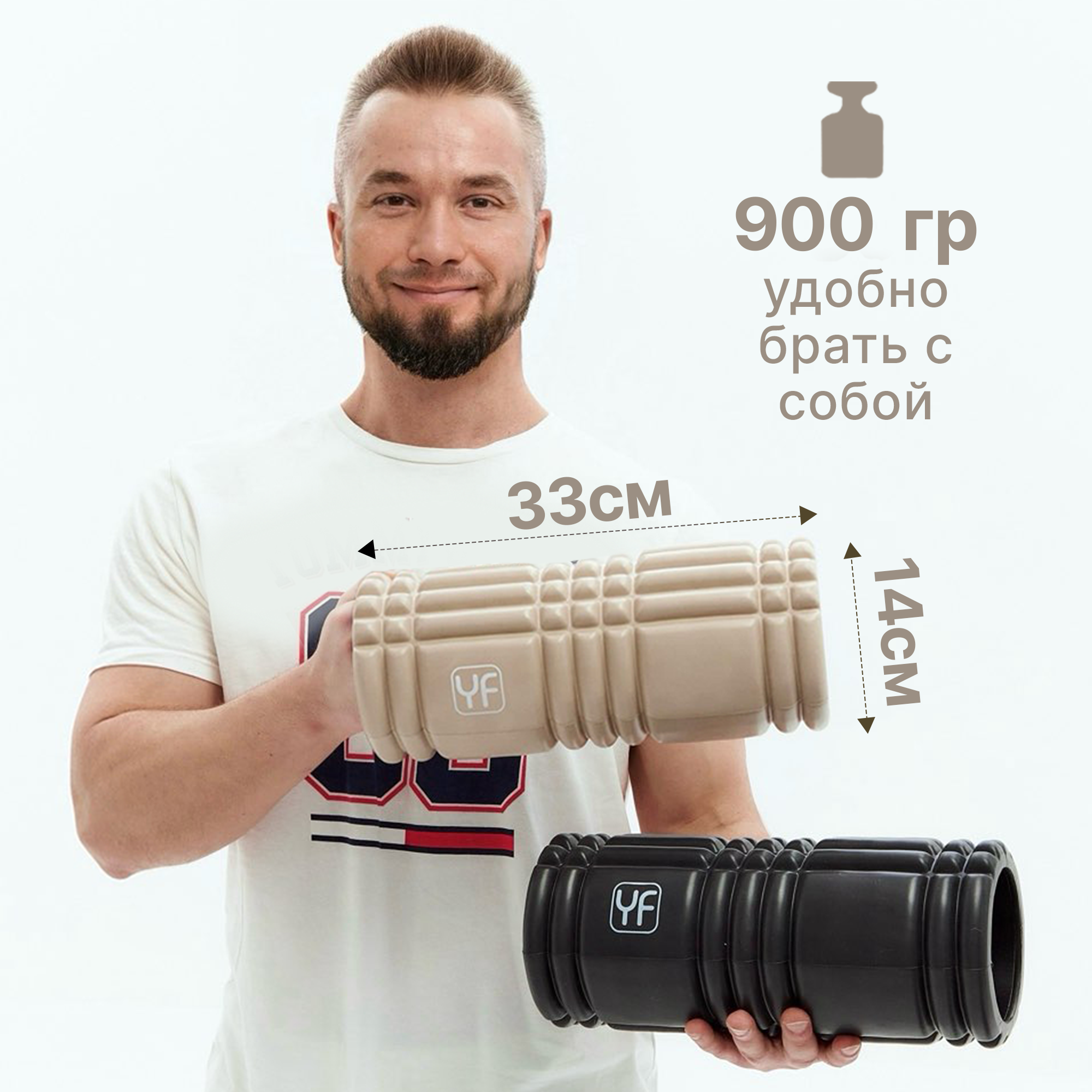 Мфр ролик, Валик для спины массажный, ролл спортивный YourFit, 45 см, бежевый 1 550 ₽
