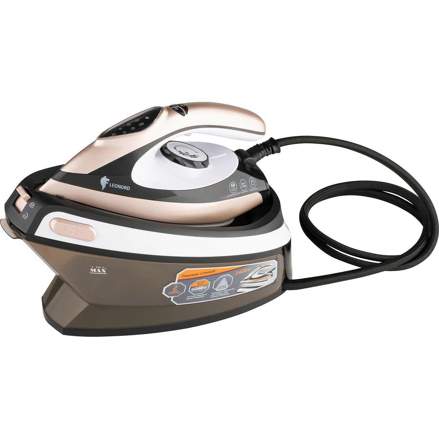 10 цен на Паровая станция Leonord LE-1806 (2400Вт, LED дисплей, самооч, керамич. подошва)