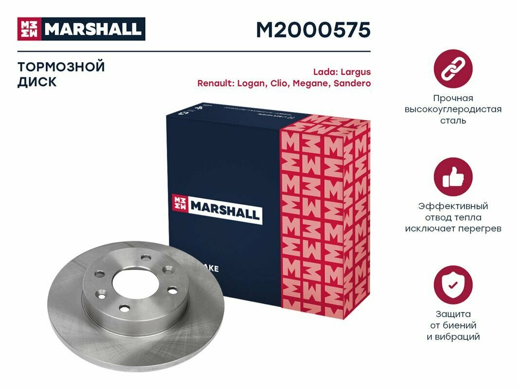 Тормозной диск передний MARSHALL M2000575 для Lada Largus (без ABS); Renault Logan / Clio / Megane / Sandero // кросс-номер TRW DF1013 1 919 ₽