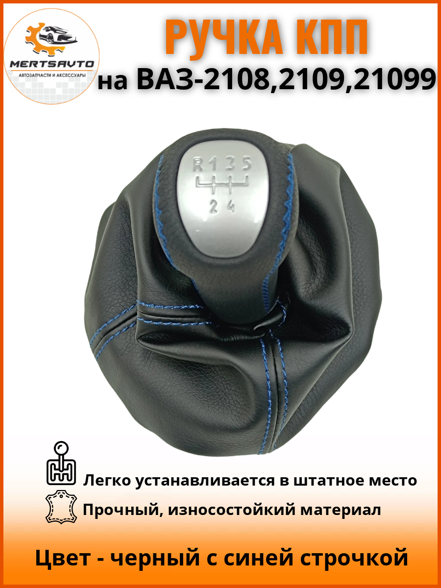 Отзывы на Ручка КПП с чехлом люкс-серебро на ВАЗ-2108, 2109, 21099 (Lada Priora) ручка коробки переключения передач, черный с синей строчкой