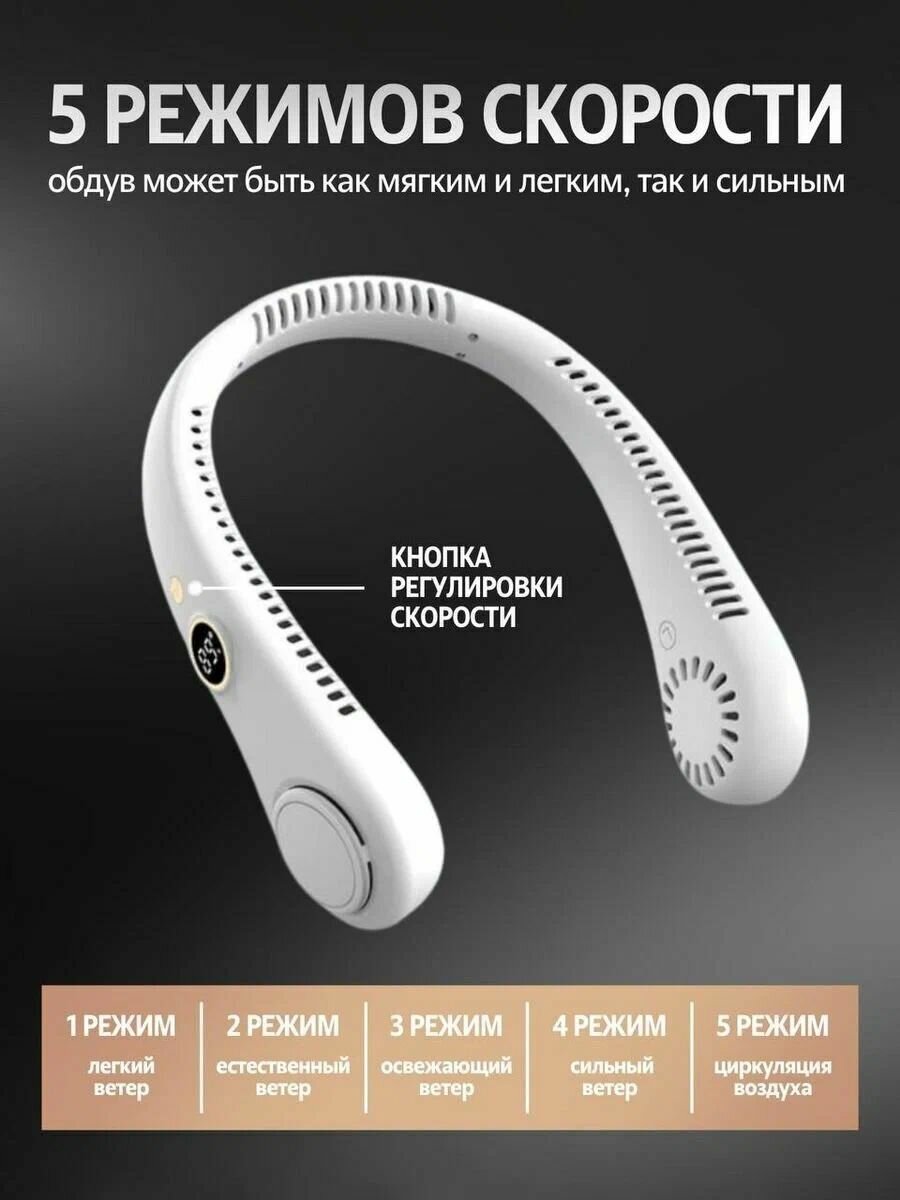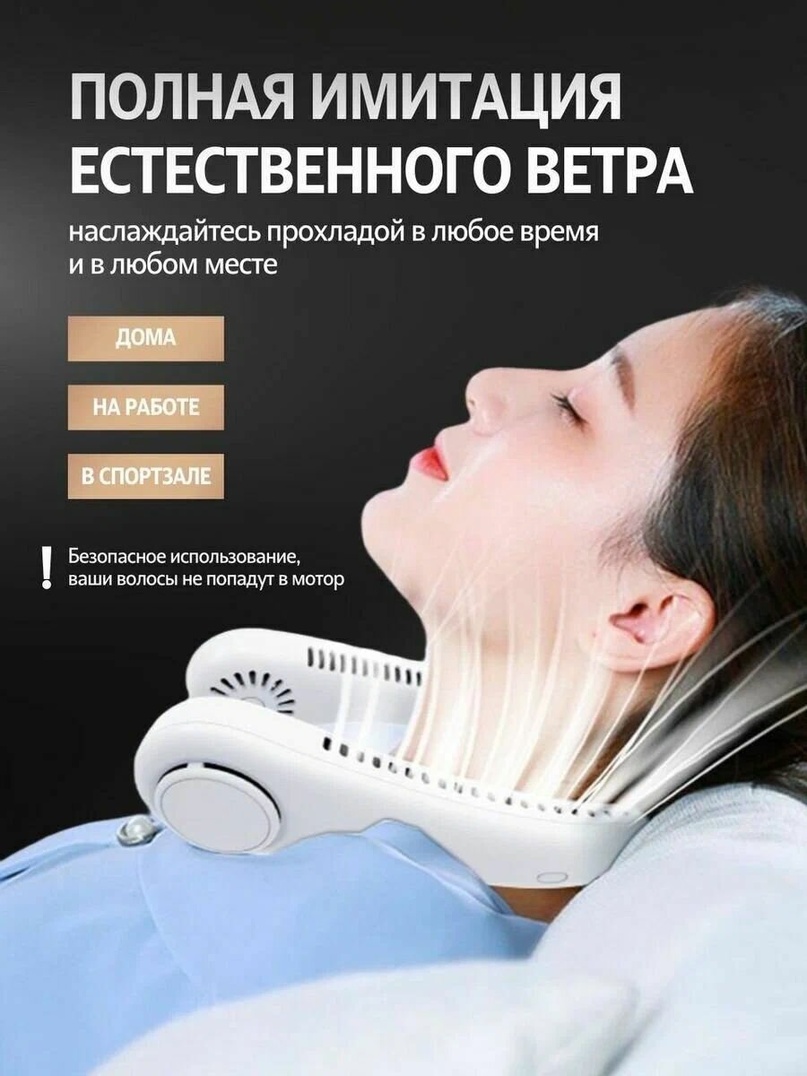 Вентилятор портативный переносной на лицо и шею, компактный шейный вентилятор, белый