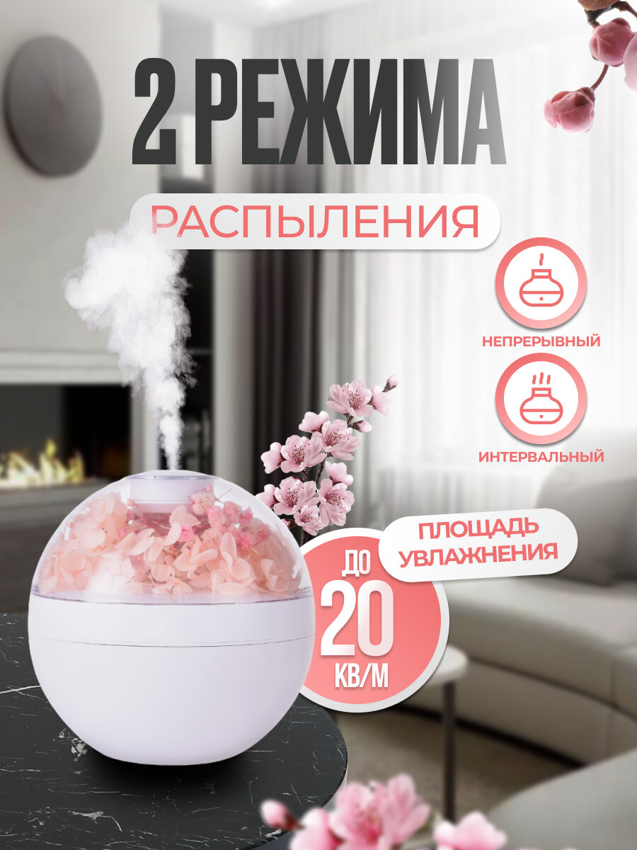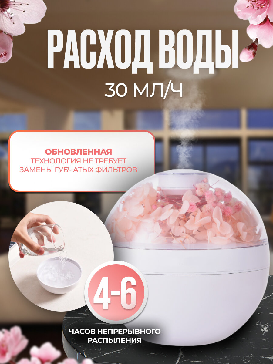 Увлажнитель воздуха для дома настольный с цветами розовый подарок на 8 марта информация: