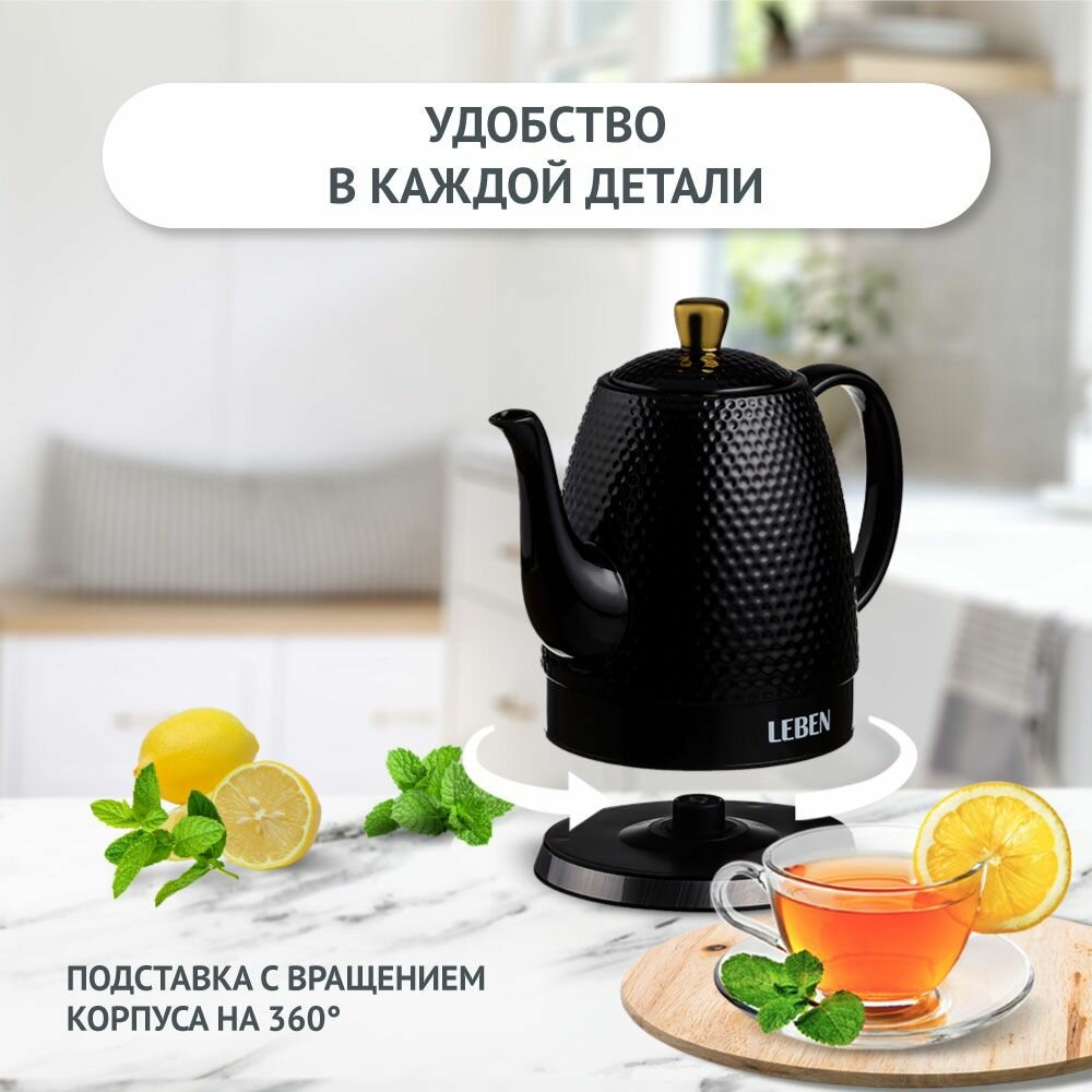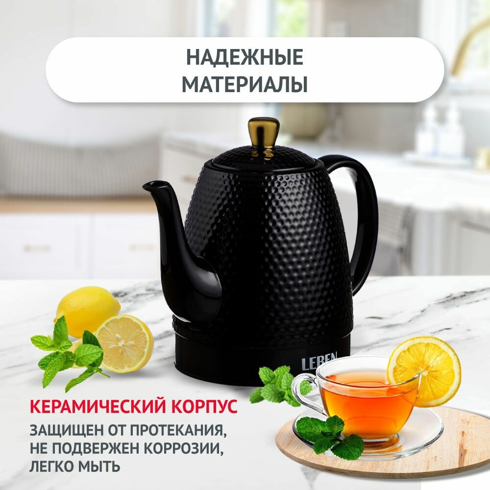 Чайник электрический керамический 1,2 л LEBEN, черный 4 364 ₽