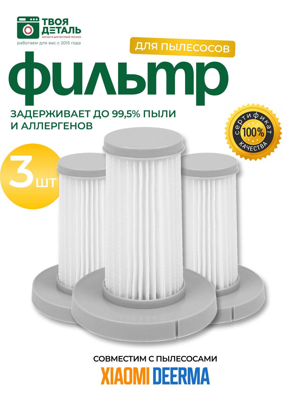 Фильтр для вертикального пылесоса Xiaomi Deerma DX700, DX700S 3шт информация: