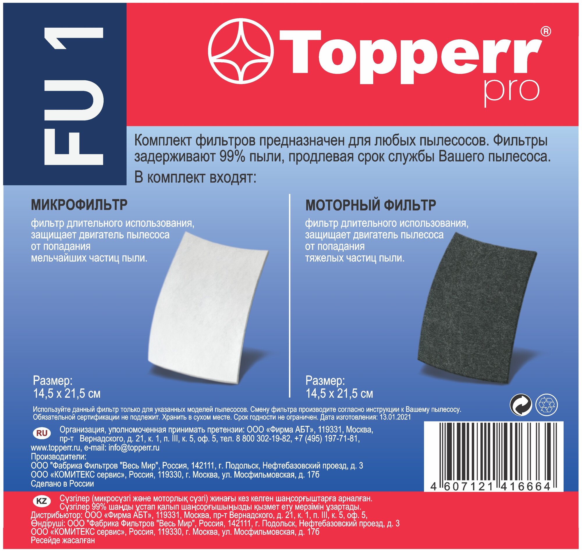 Комплект фильтров Topperr FU 1, универсальный информация: