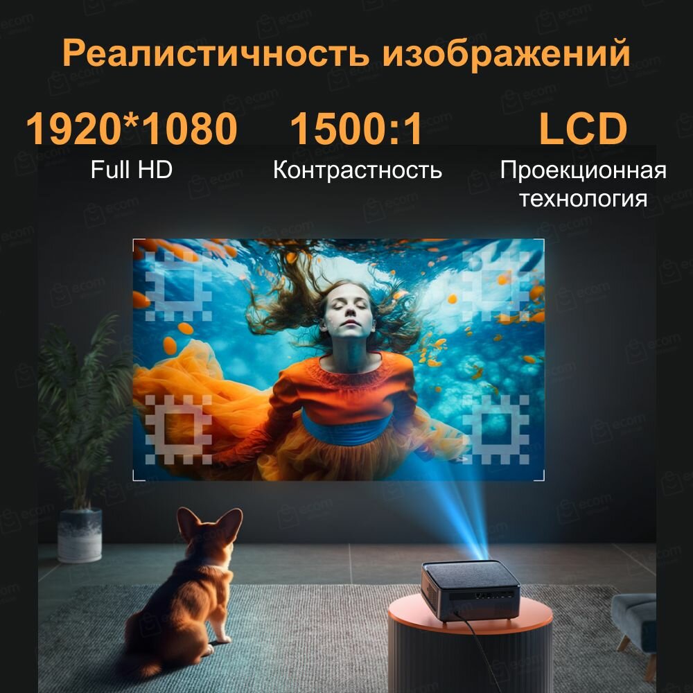 Мини проектор 4К с высоким разрешением 1920х1080 для фильмов и мультфильмов
