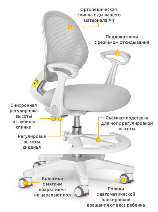 Растущее детское кресло для дома Mio Air G (арт. Y-400 G (arm)) для обычных и растущих парт + подлокотники + подставка для ног + чехол на сиденье 15 200 ₽