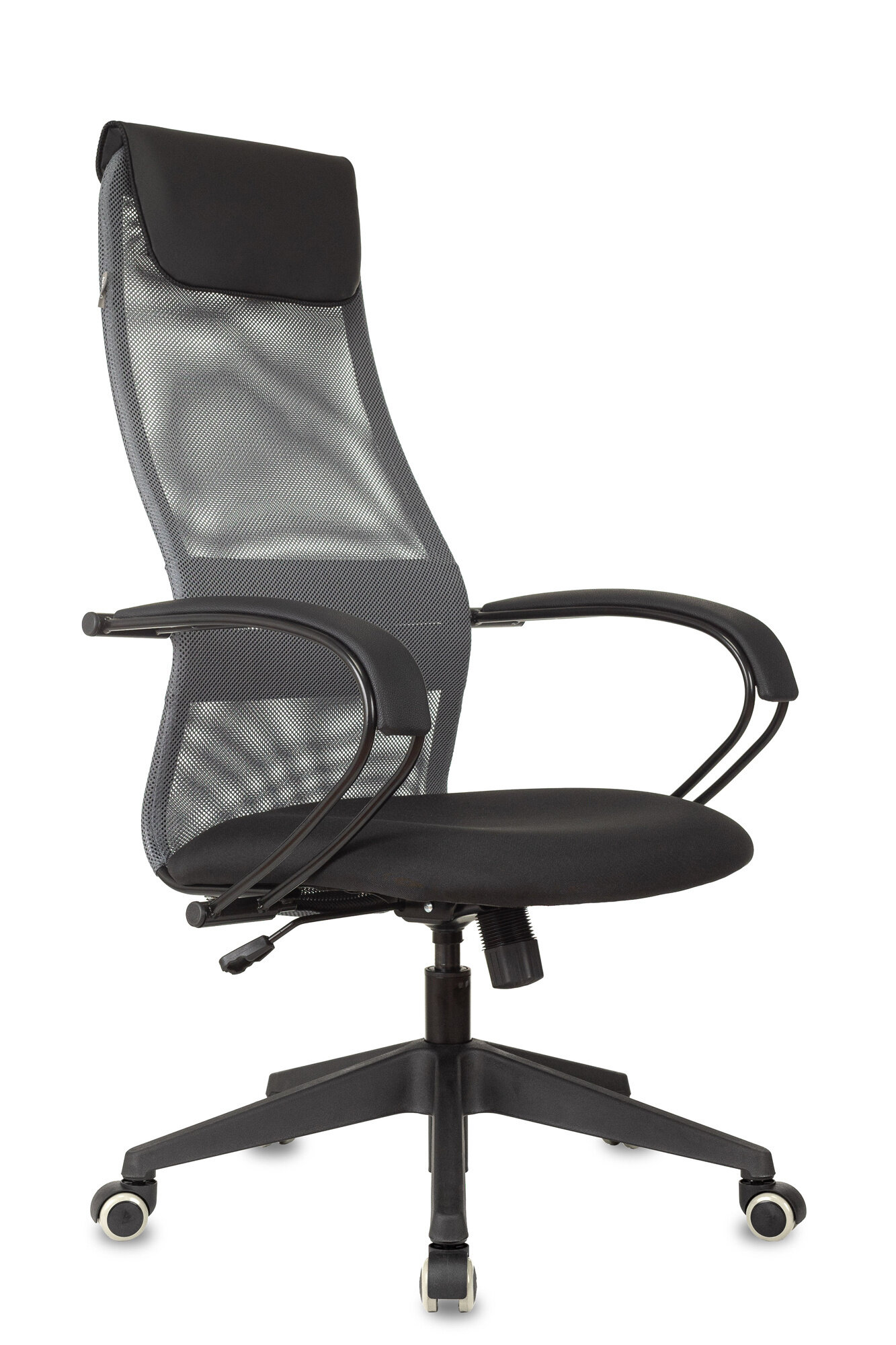 Кресло руководителя Бюрократ CH-607/LGREY черный/серый, сетка/ткань, с подголовником, крестовина пластик