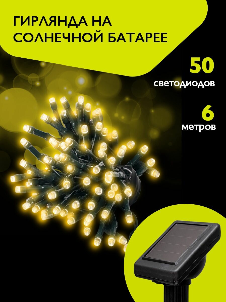 10 цен на Светильник светодиод на солнечной батарее Гирлянда 6.9м 50LED желтый SLR-G01- 50Y ФАZА