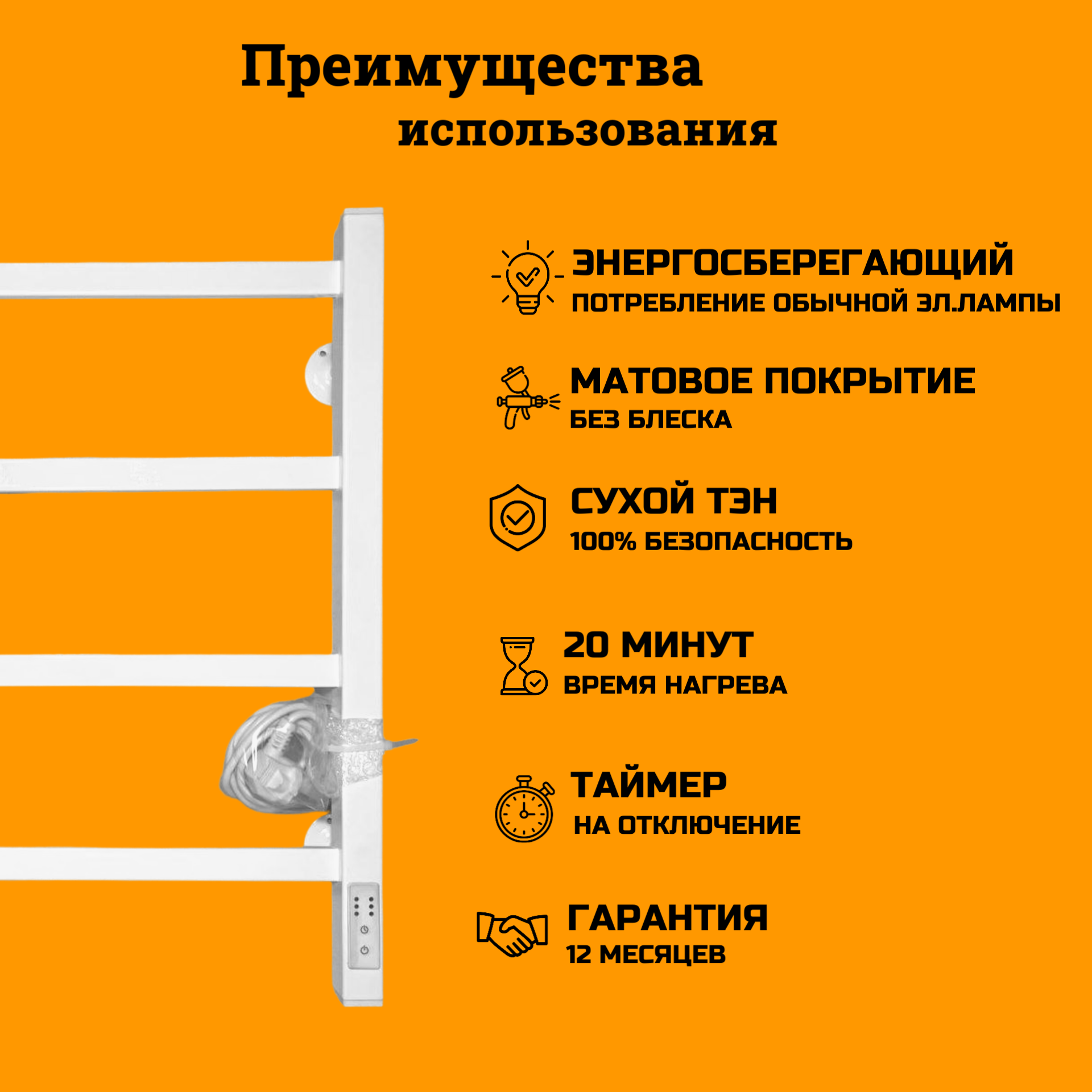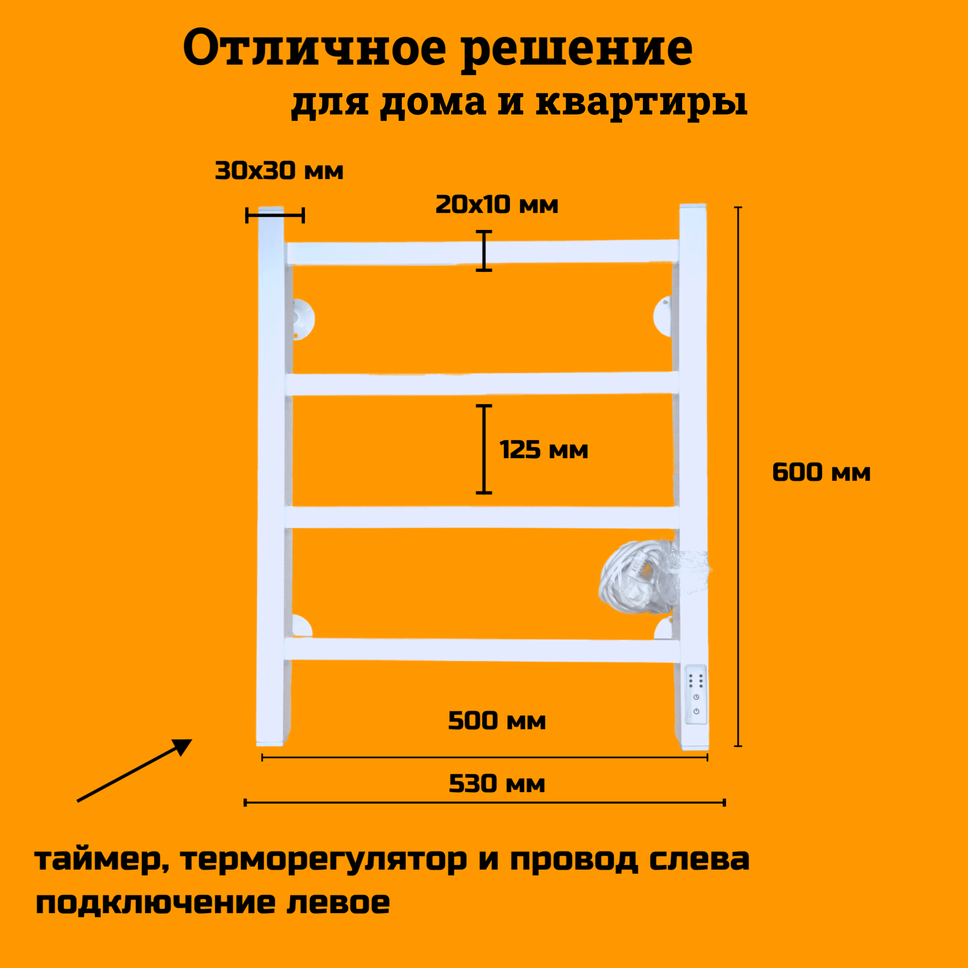 Отзывы на Полотенцесушитель электрический РуДизайн Лесенка профиль 500*600 белый матовый, 55 Вт, таймер и подключение справа