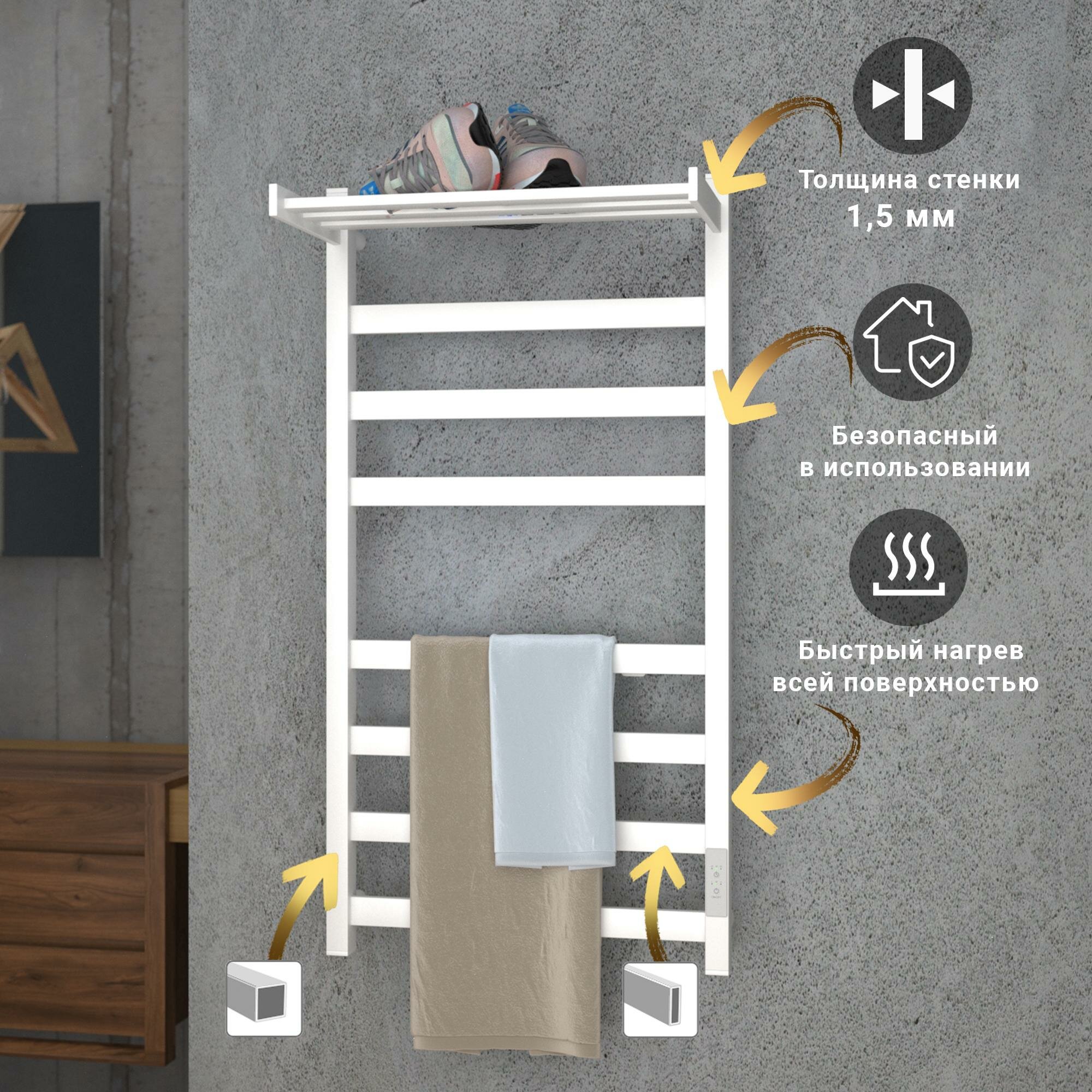 Полотенцесушитель электрический (антифриз) Point PN10158PE П6 500x800 с полкой левый/правый, хром