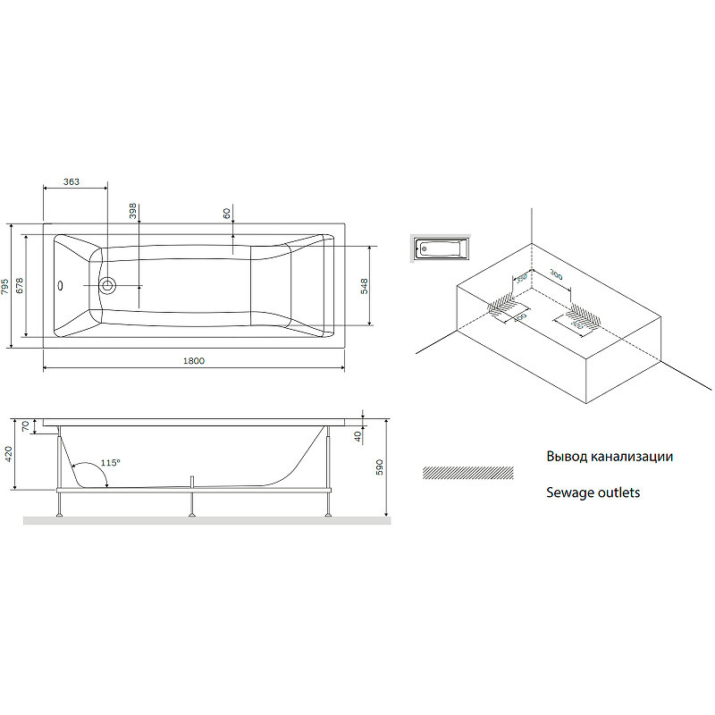 Ванна Gamma 140х70 см, акриловая, на каркасе, экран к ванне Gamma 140