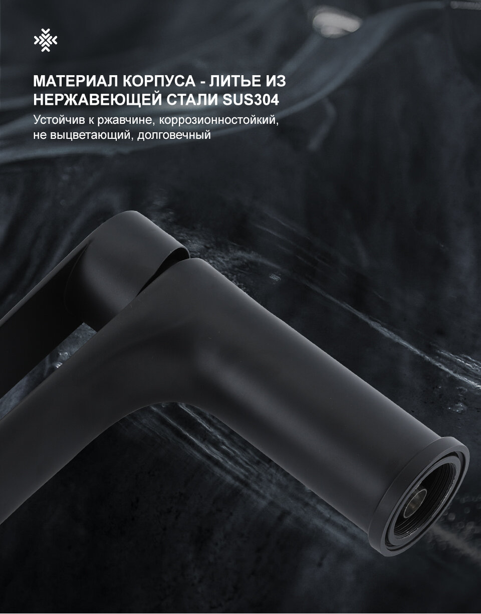 FRAP F10806-6, Смеситель для раковины, нержавеющая сталь, черный, крепление гайка 4 180 ₽