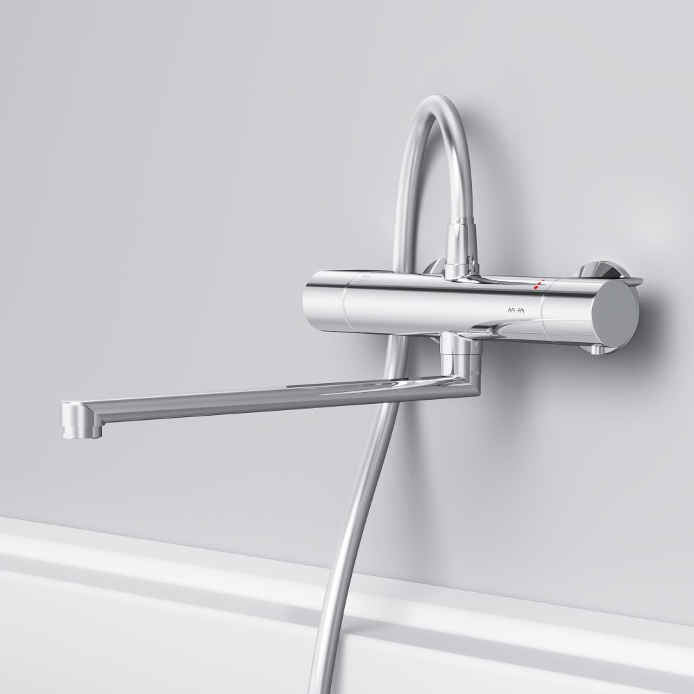 Термостатический смеситель для ванны AM.PM Chic хром, термостатический картридж с высокочувствительным термоэлементом, гарантия 10 лет,