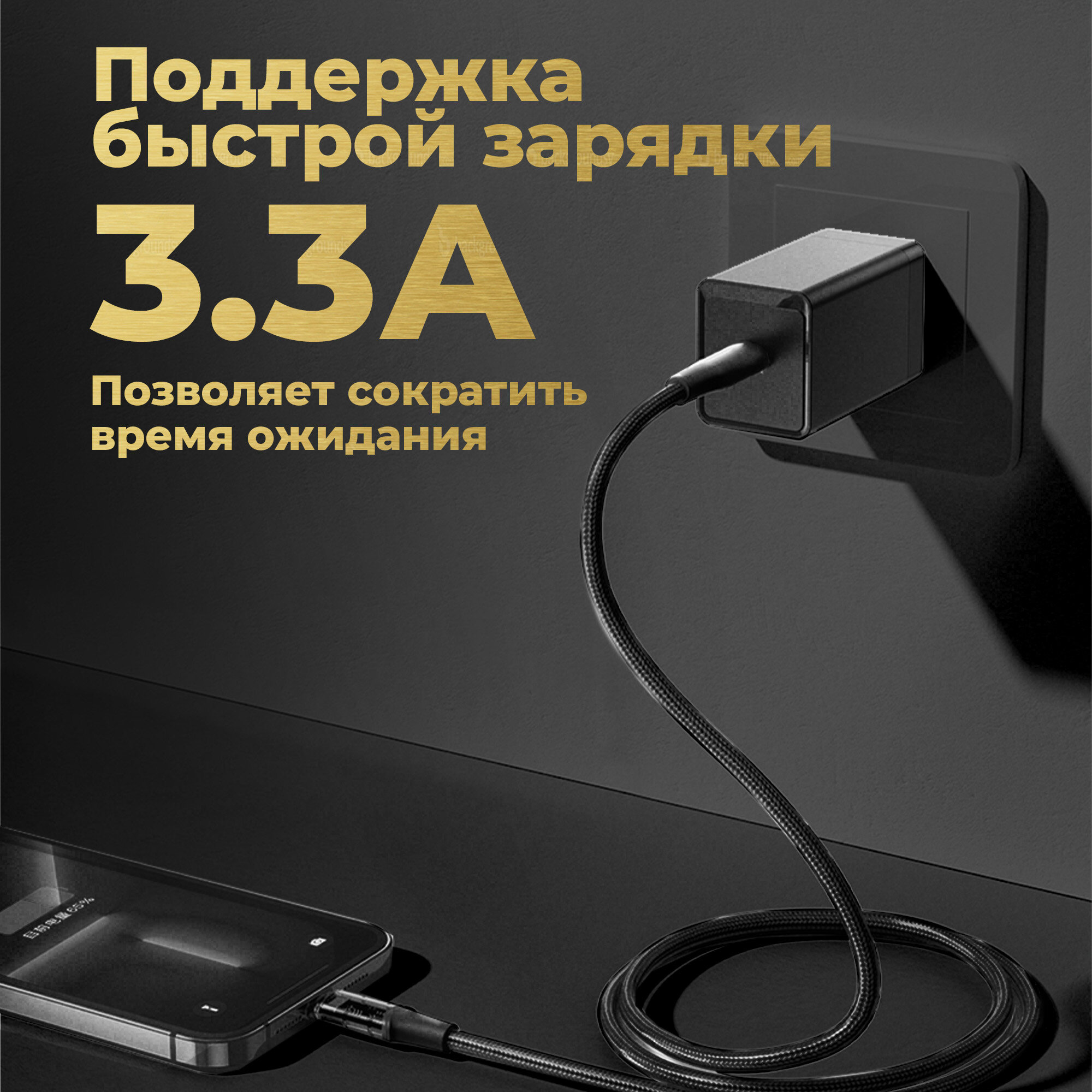 Кабель для айфона, WALKER C950, Lightning, 1м, 3.3А, тканевая оплетка, быстрая зарядка, передача данных провод для зарядки Apple, шнур Iphone, черный информация: