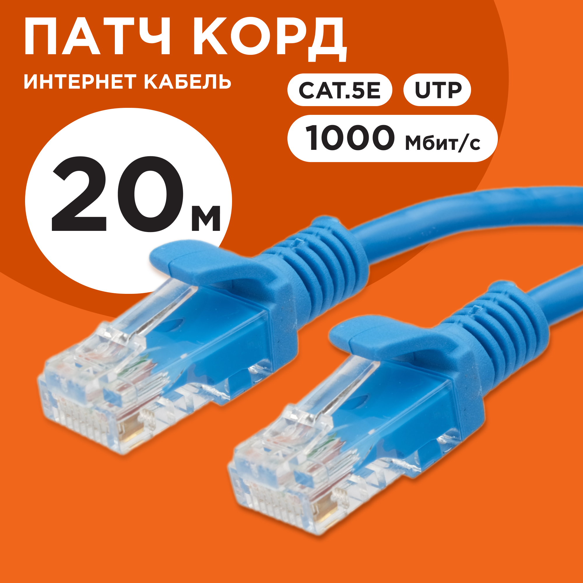 Отзывы на Комплект 5 штук, Патч-корд UTP Cablexpert PP12-20M/B кат.5e, 20м, синий