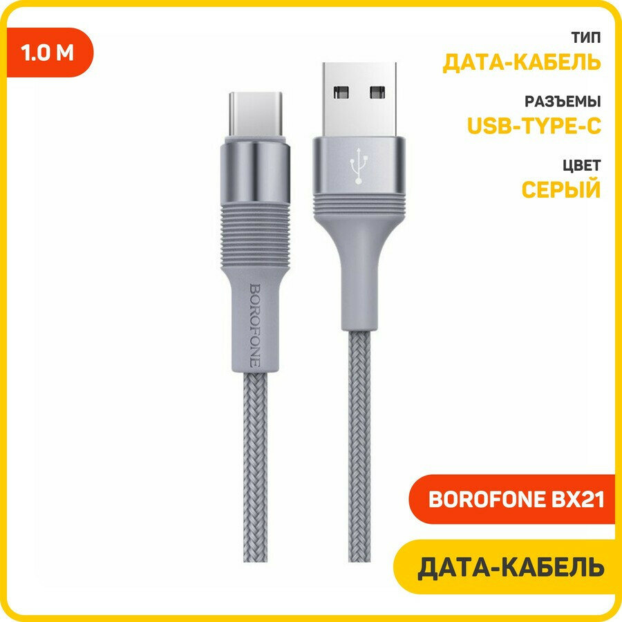 Кабель BOROFONE BX21 Outstanding, USB - USB Type-C, 1 м, 1 шт., metal grey информация: