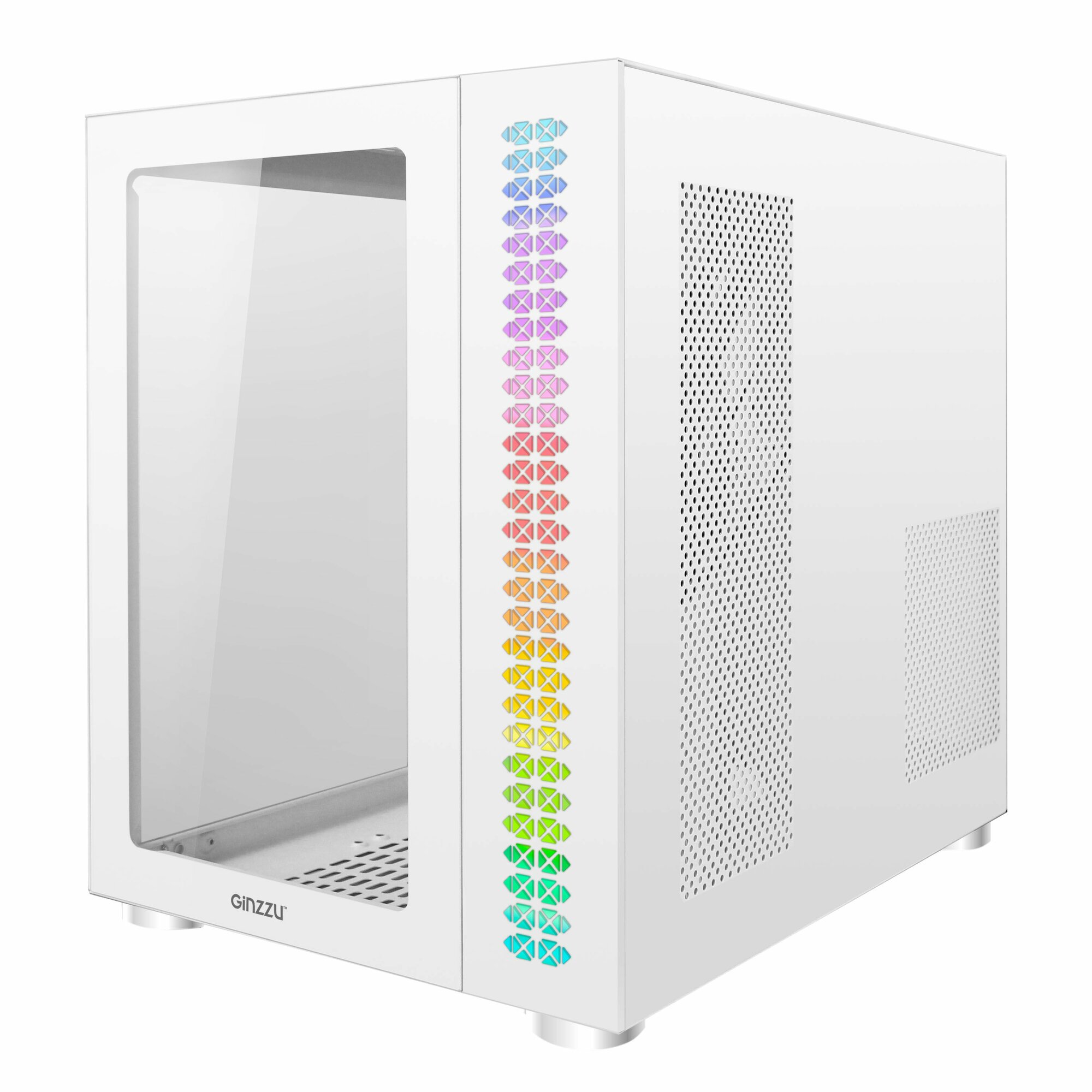 Корпус Ginzzu V450 mATX кубик, закаленное стекло, RGB подсветка, система охлаждения