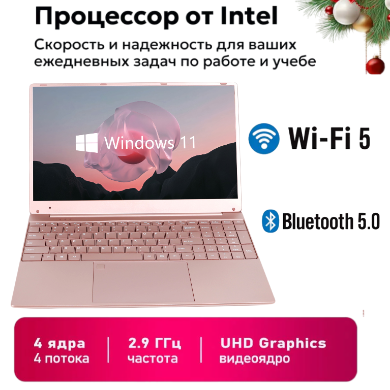 15.6" Ноутбук для работы и учебы, Notebook, RAM 16 ГБ, SSD 1ТБ, IPS Full HD 1920x1080, Intel N5095, Windows 11 pro, цвет Розовое золото, русская раскладка информация: