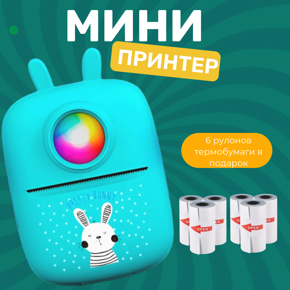 | Комплектация | Мини принтер, 6 рулонов термобумаги, инструкция на русском языке, usb провод для зарядки |
