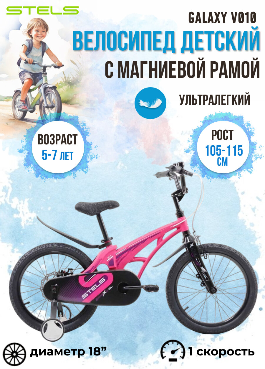 Велосипед детский Stels 18" Galaxy V010 2021 года розовый информация: