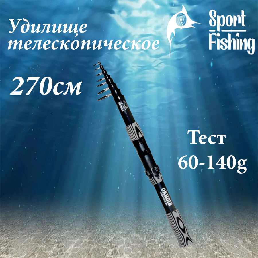 Удочка для рыбалки, спиннинг для донной рыбалки Okuma 270 см, тест 60-140г. информация: