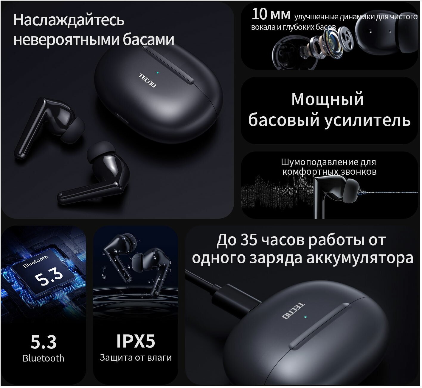 Беспроводные наушники Tecno Buds3 Чёрный информация: