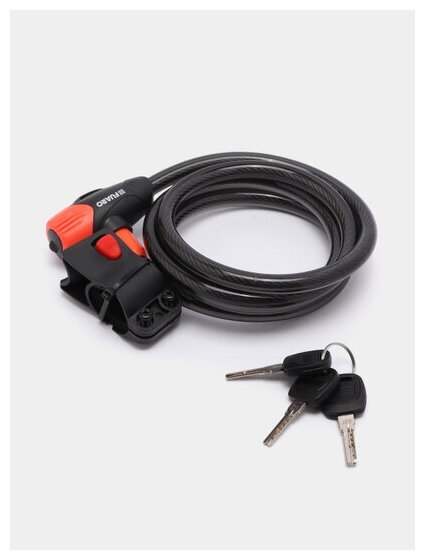 40052 Замок велосипедный тросовый с ключом, замок для коляски, для самоката BASARA B3-1000 MBP, 1000 мм