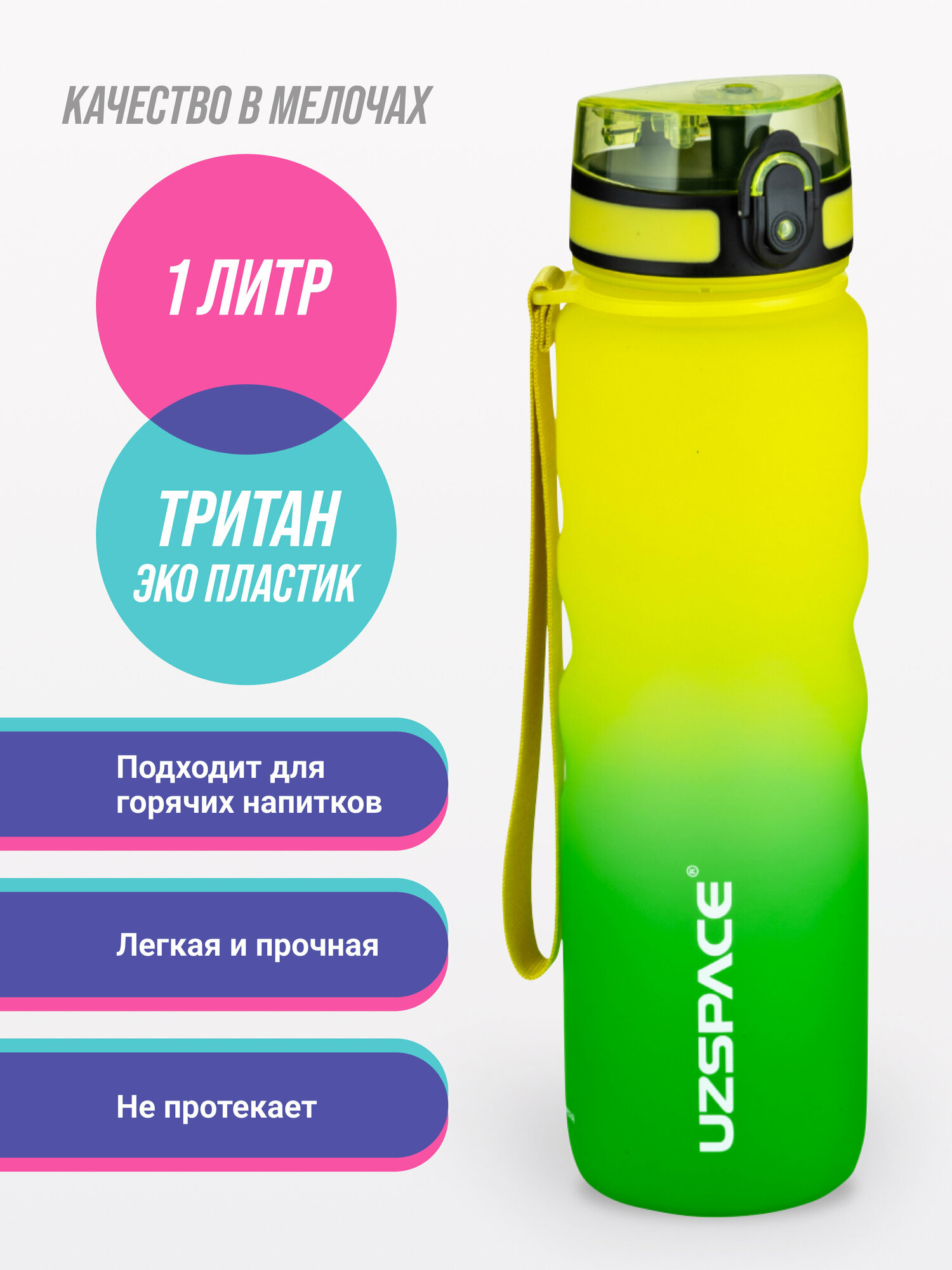 Бутылка для воды спортивная из Тритана UZSPACE1000 мл желто-зеленый 874 ₽