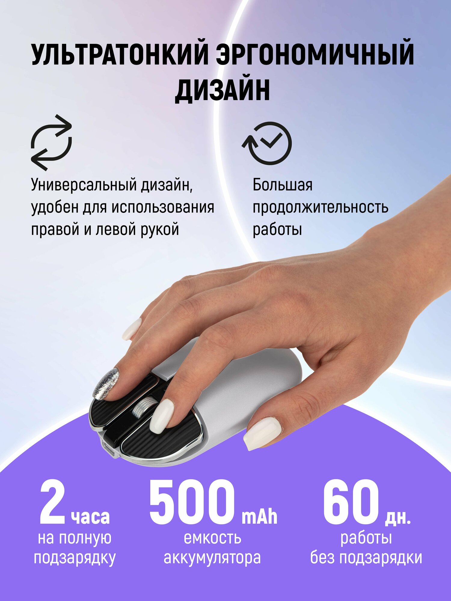 Беспроводная мышка компьютерная серебристая, для ноутбука, для игровой приставки информация: