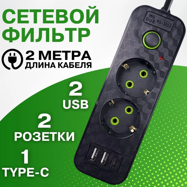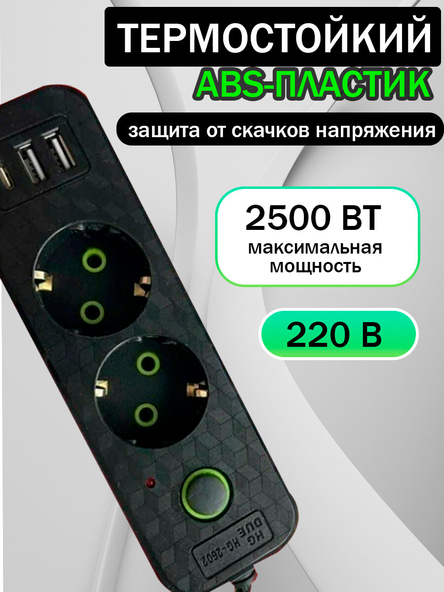 Безопасный сетевой фильтр удлинитель 6 розетки, USB и Type-C 720 ₽