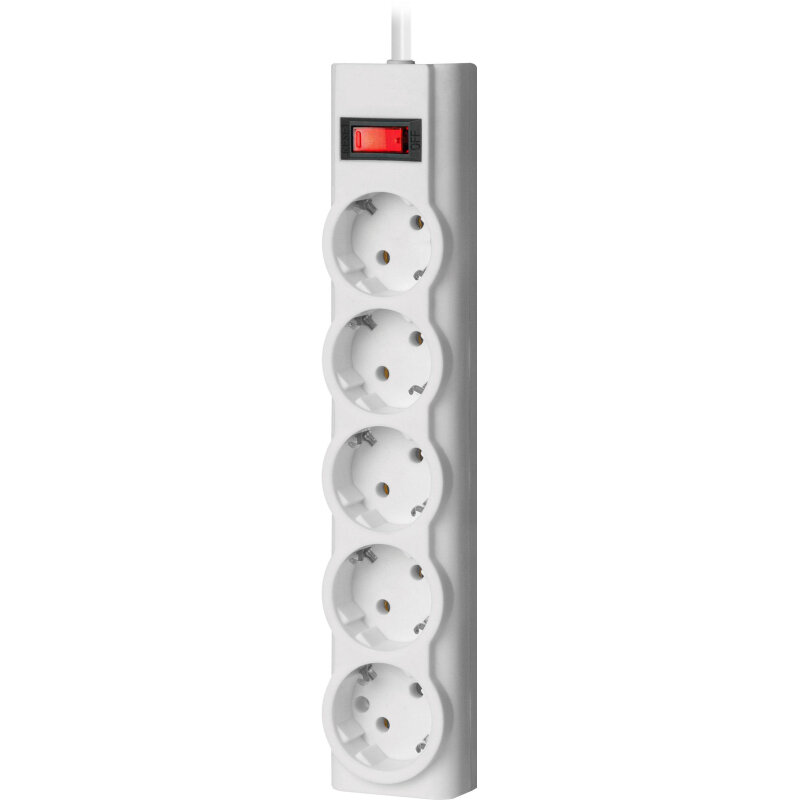 Сетевой фильтр-удлинитель Defender 5 розеток с заземлением , 1.8 метра , выключатель , белый