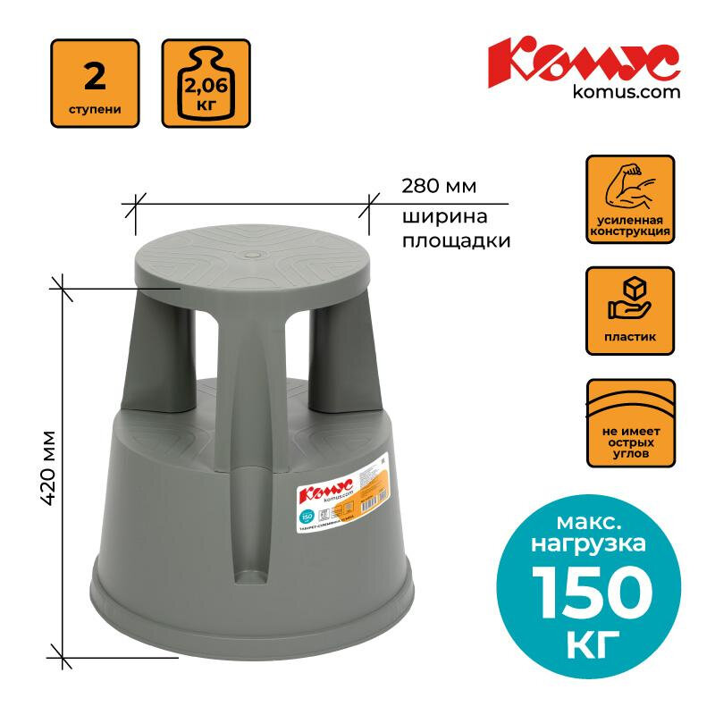 | Дополнительная информация | Стремянка-табурет пластиковая 2 ступени Комус серая |