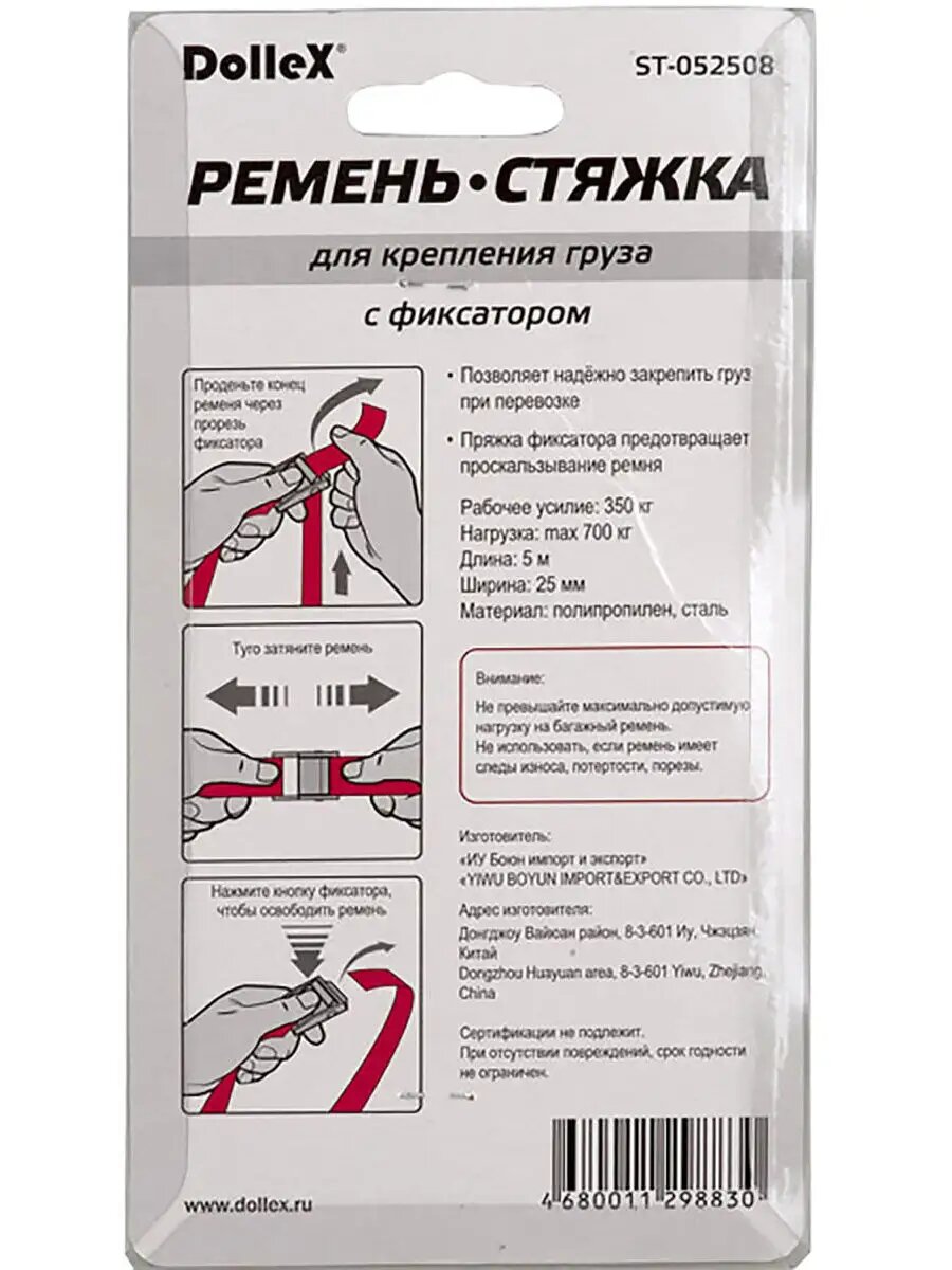 Стяжка для крепления груза (5 м х 25 мм) 0,7 т, с фиксатором (1 шт.) информация: