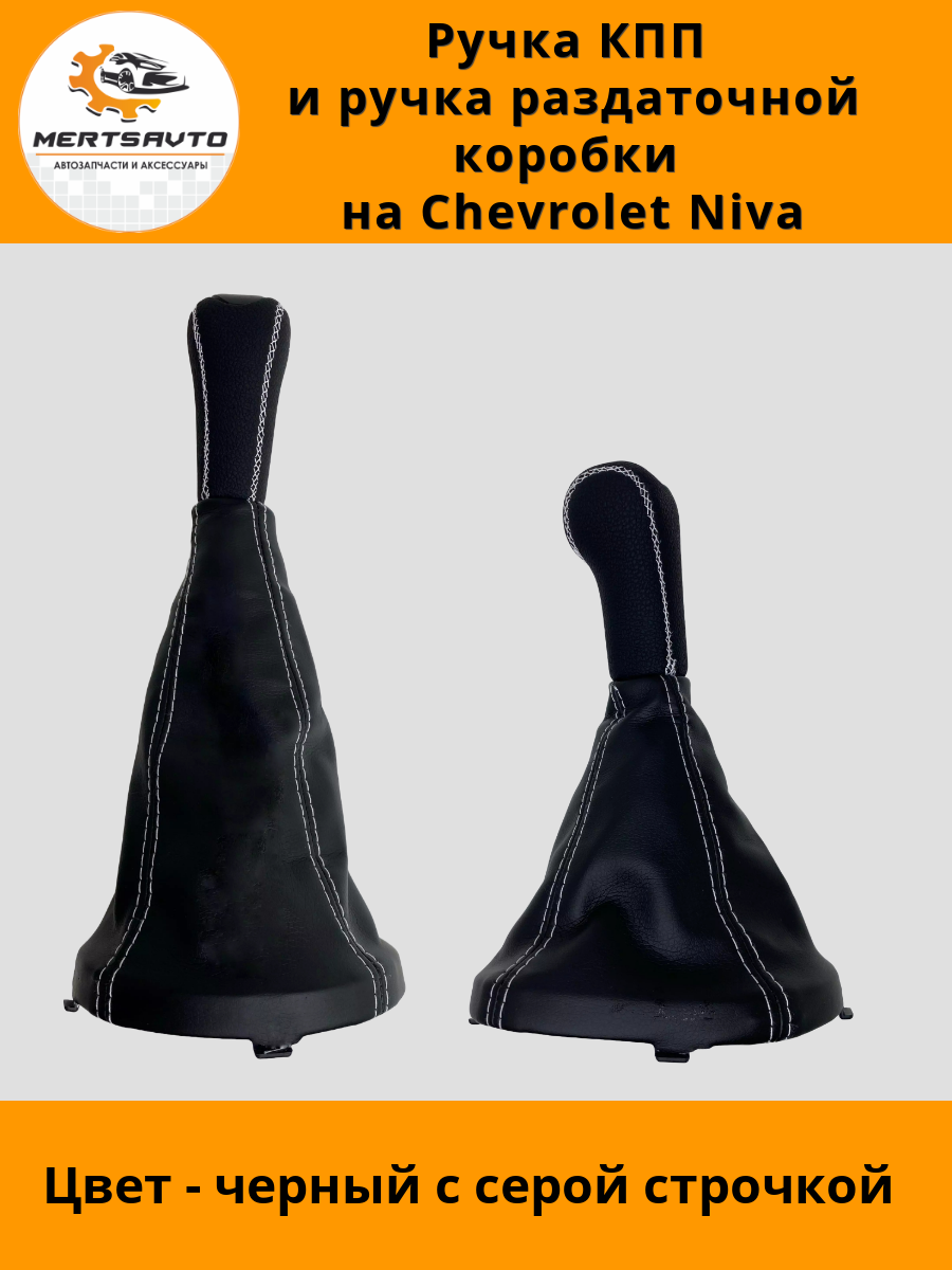 10 цен на Ручка КПП с чехлом и ручка раздаточной коробки NIVA Chevrolet (Нива Шевроле) черные с серой строчкой