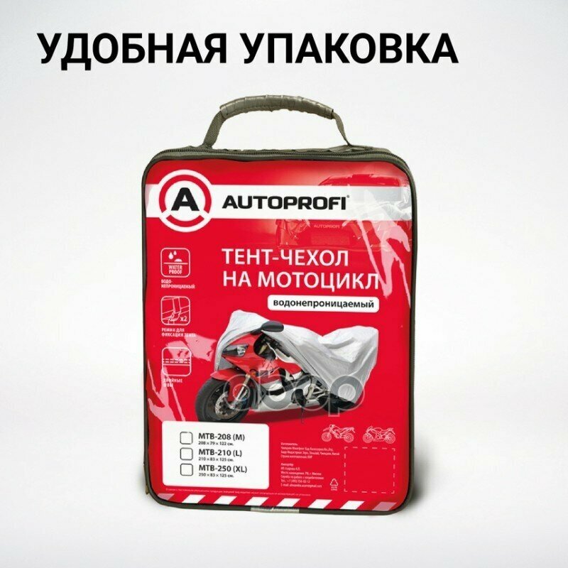 Чехол-Тент На Мотоцикл Autoprofi Разм. M 208Х79х122 См Mtb-208 (M) AUTOPROFI арт. MTB-208 (M) информация: