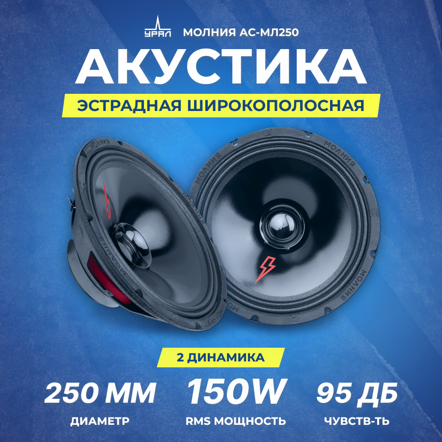 Акустика широкополосная УРАЛ МОЛНИЯ АС-МЛ250, 10", 150/300 Вт 4 182 ₽