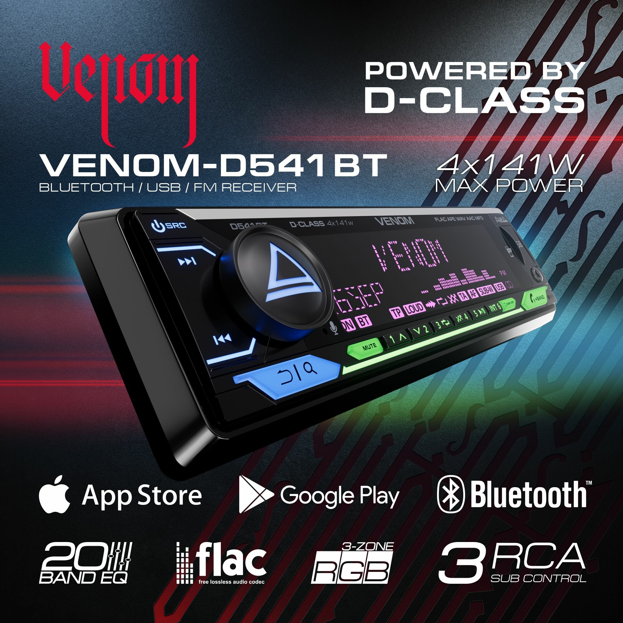 Автомобильный BT/USB/FM ресивер AurA VENOM-D541BT информация: