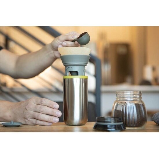 Портативная капельная кофеварка Wacaco Cuppamoka для фильтр кофе, термокружка с вакуумной изоляцией из нержавеющей стали с двойными стенками и герметичной крышкой WCCCPM, объем 300 мл, цвет серый 4 390 ₽