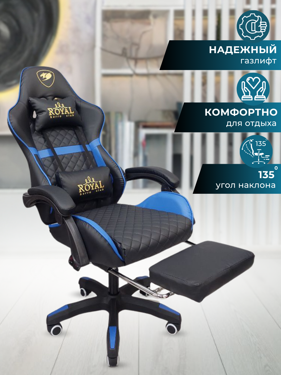 10 цен на Игровое компьютерное кресло Mega Мебель с подставкой для ног, черно-синее, экокожа