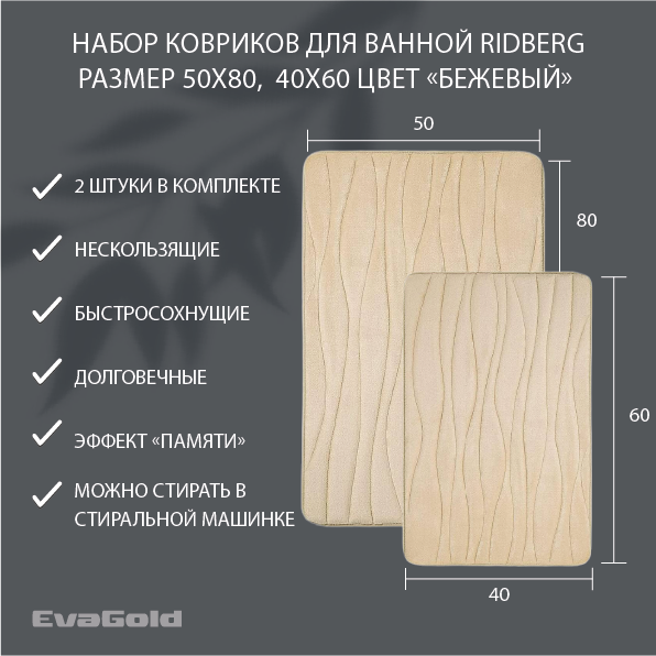 10 цен на Гидромассажная ванна EvaGold OLB-806 155х155х77 с двумя ковриками для ванной, бежевый