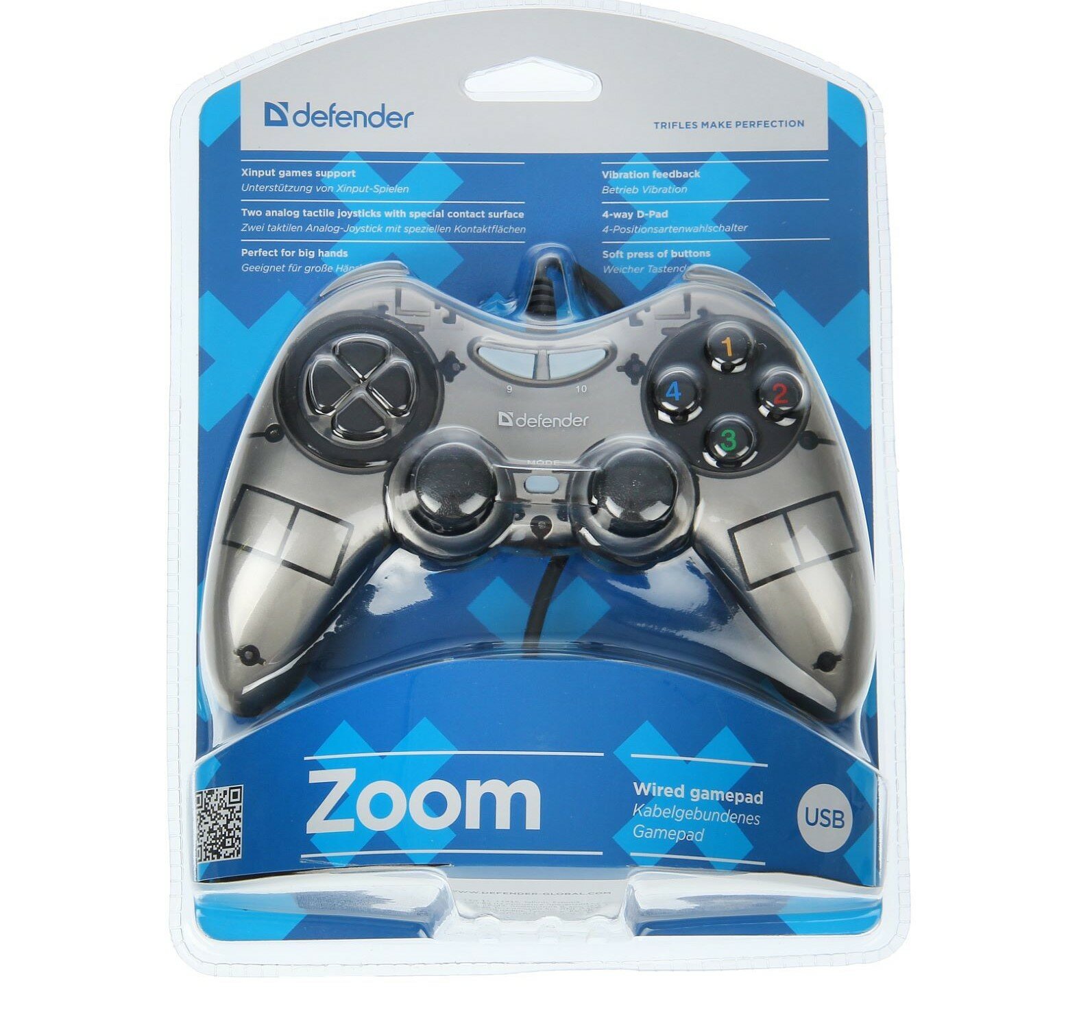 Отзывы на Геймпад Defender Zoom, хinput, проводной, вибрация, для PC, USB, серо-черный