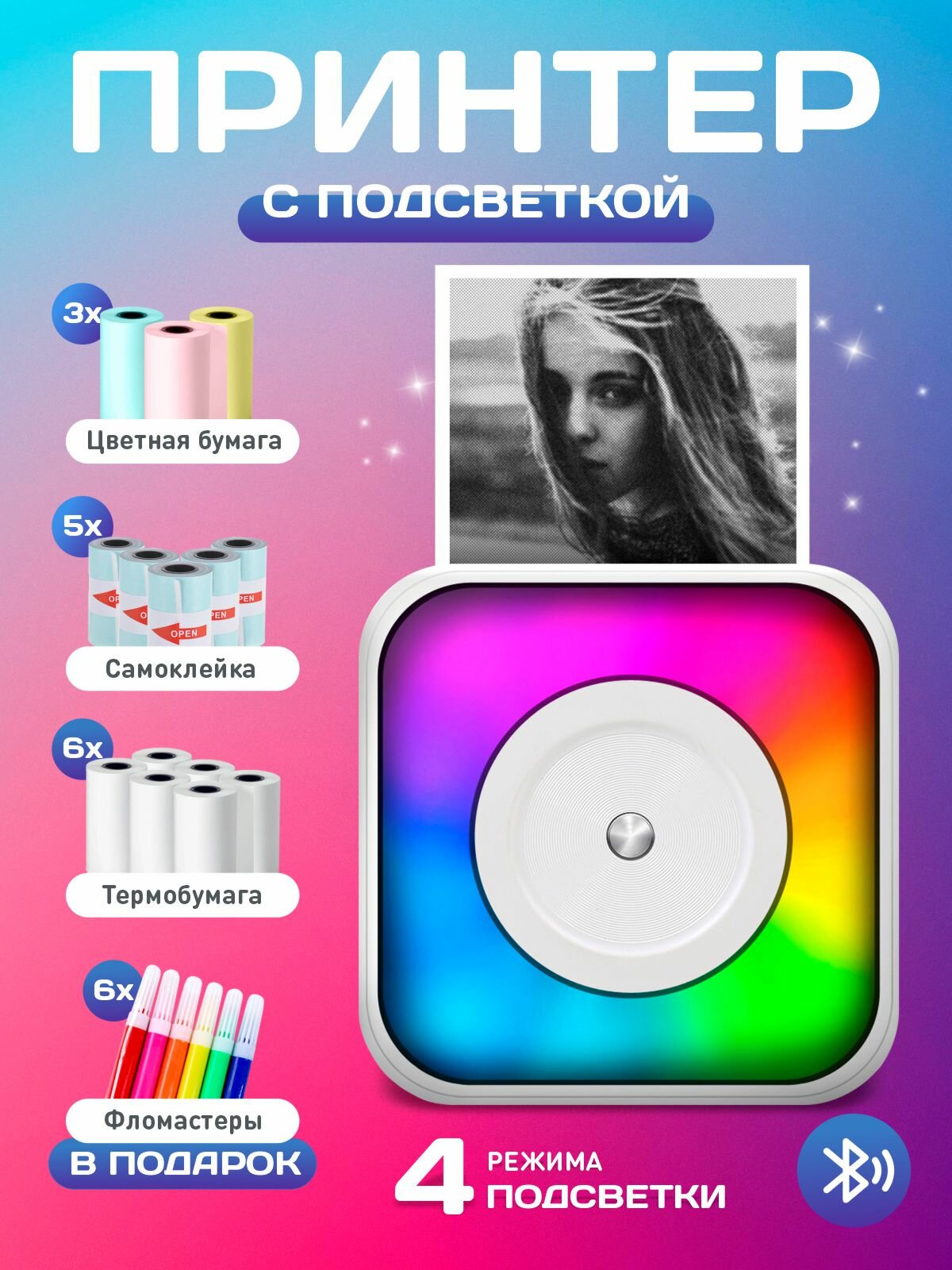 10 цен на Беспроводной мини-принтер RGB для телефона 8 режимов подсветки