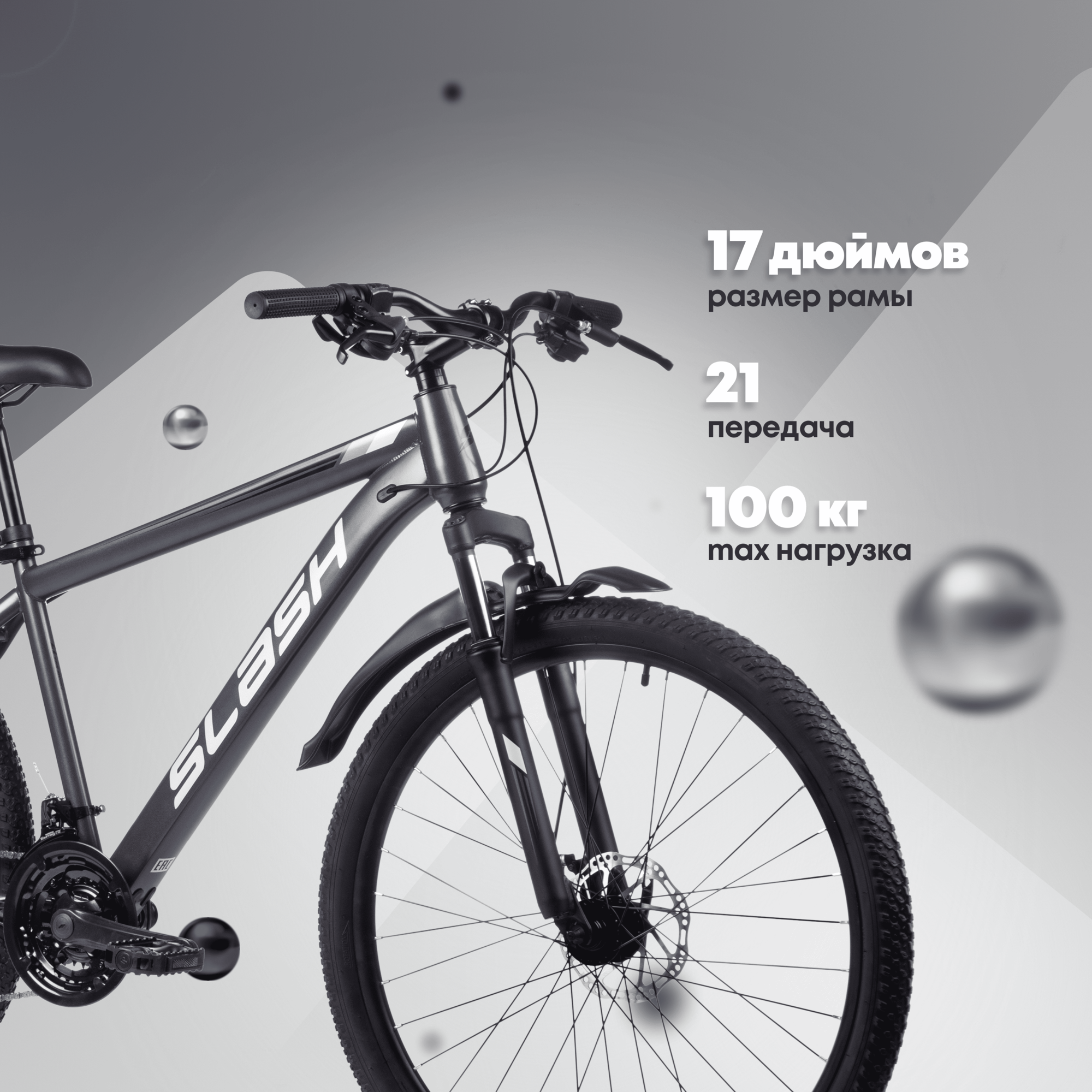 Велосипед горный взрослый Slash Stream серый, 27.5 колеса, 17 рама, 21 скорость (рост 160-172 см) информация: